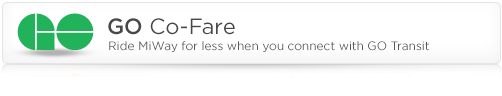 | GO Transit Co-fare | Enjoy free travel on MiWay when you connect with GO Transit using your PRESTO card. |