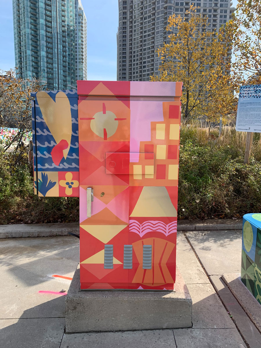 All One is a temporary public art installation that references the architectural shapes of locations and buildings in Mississauga’s downtown core. Playfulness and coherence complement one another, while the rhythmic and cheerful quality of the work reflects Mississauga’s diverse community and togetherness.