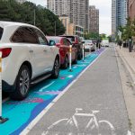 Interconnection is a collaboration between the City’s Public Art Program and Active Transportation Unit. The protected, on-road bike lanes on Living Arts Drive have been installed to increase safety and comfort for everyone, using a design that is the first of its kind in Mississauga. Read more about this new cycling infrastructure.