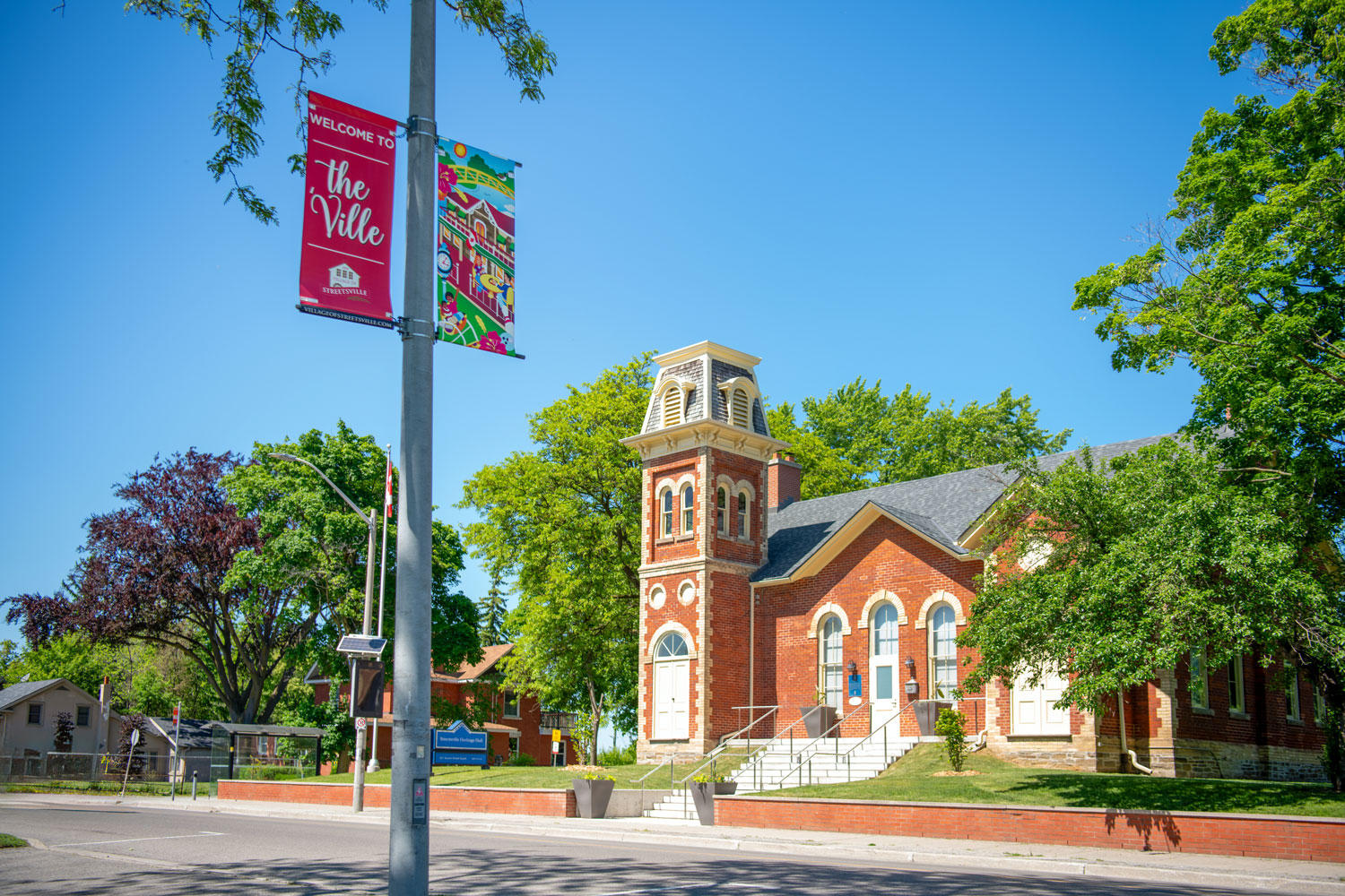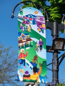 Co-commissioned with Streetsville BIA, this banner features Franklin House, Streetsville Memorial Park, Streetsville Village Clock, and a ferris wheel (referencing the Bread & Honey Festival).