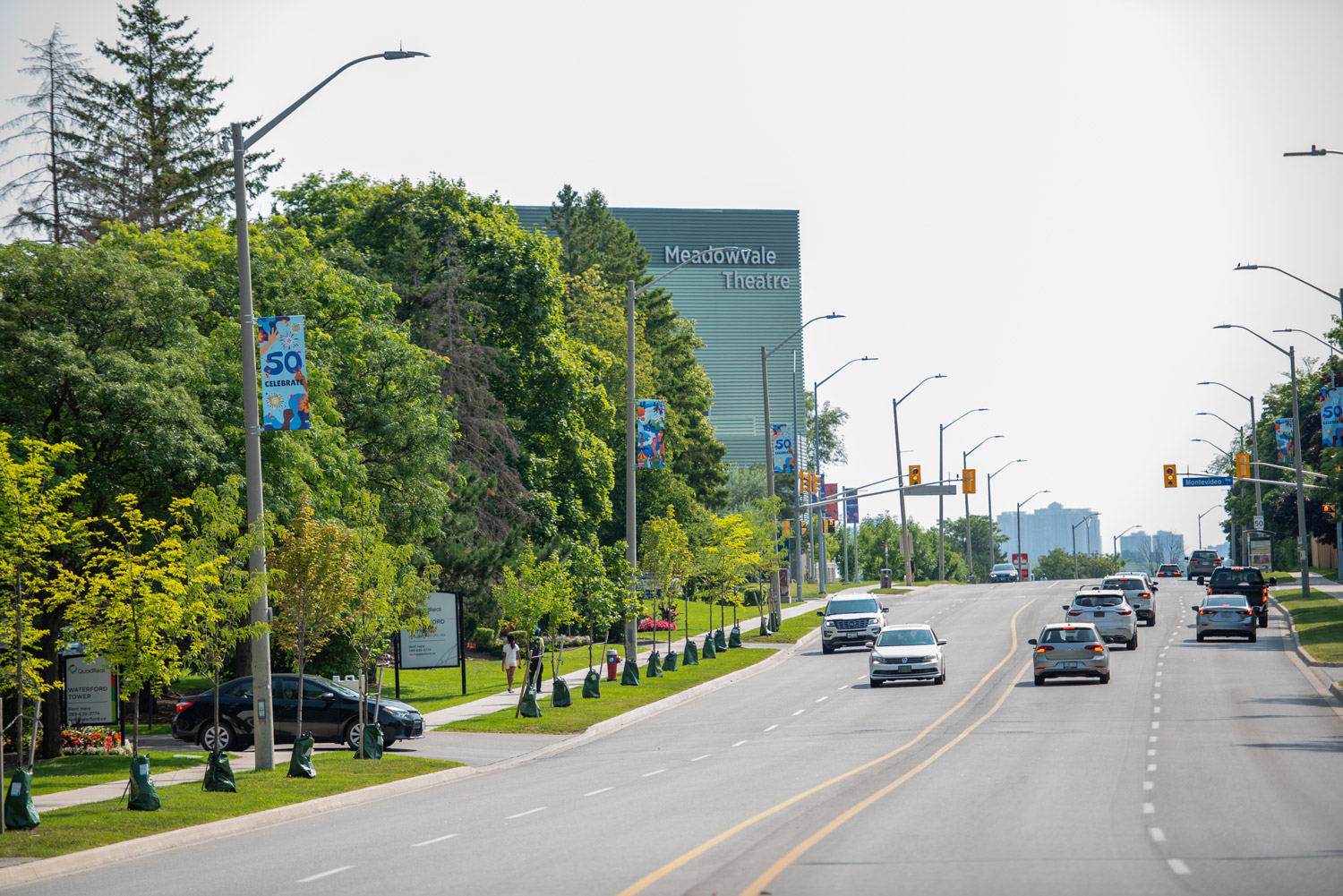 You can see this banner throughout Clarkson Village and in the city’s Downtown Core.