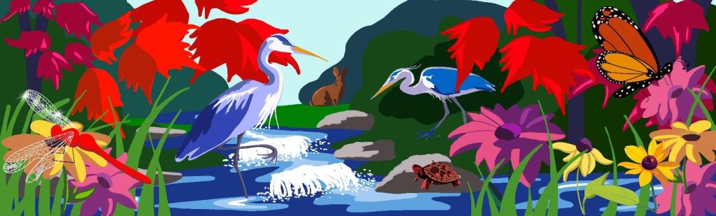 Mississauga has been my home since 2011, and I’ve grown to love its natural beauty. “Where the Wild Things Swim” celebrates that, featuring local species like the great blue heron, painted turtle, eastern cottontail and native plants. The scene is a metaphor for a diverse, thriving community. Vibrant colours and flowing forms reflect the energy of the David Ramsay Outdoor Pool.