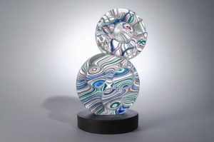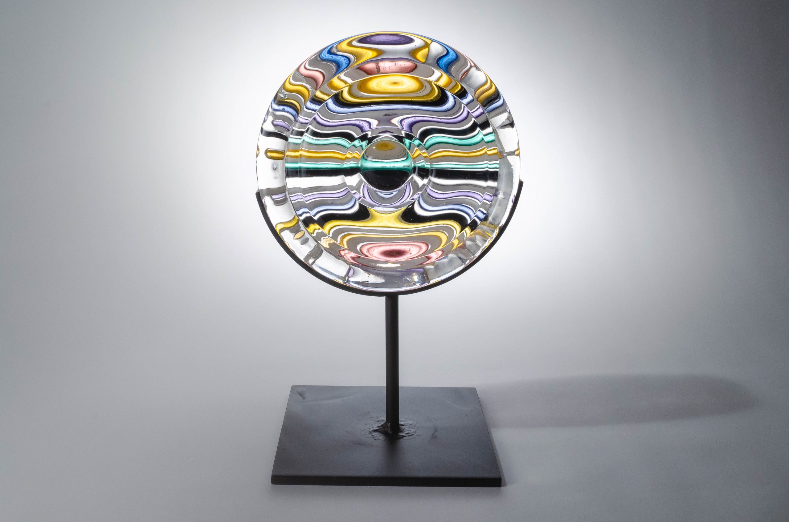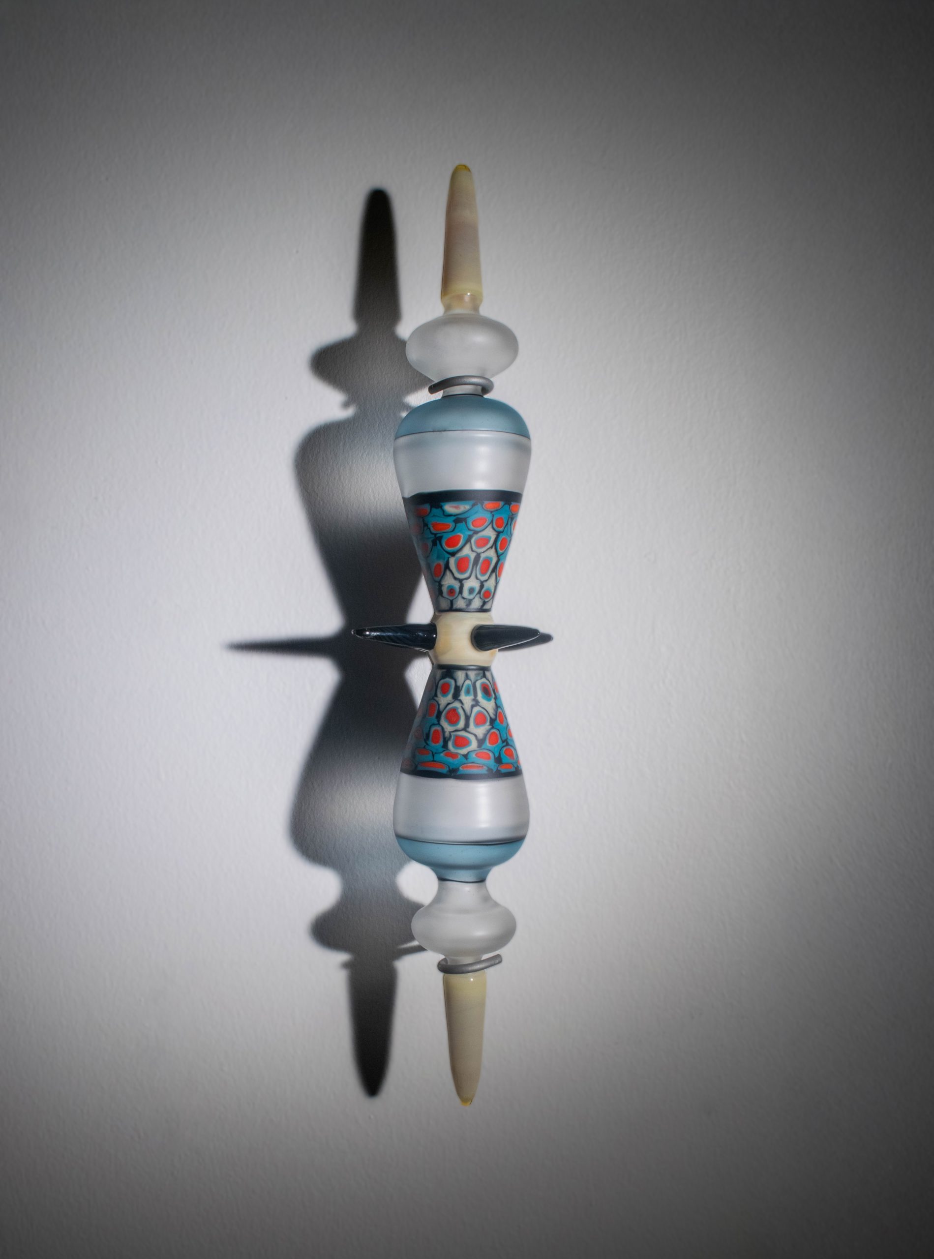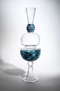 Aiden’s practice focuses on murrini and cane techniques to create sculptural and vessel forms that explore geometric pattern, repetition, and structure. Drawing inspiration from architecture, woven design, and geometric forms, his work investigates how pattern can act as a tool for building rhythm and order. His exploration of structure and pattern is closely tied to themes of identity, using visual systems to reflect personal experiences of transition, control, and self-understanding.