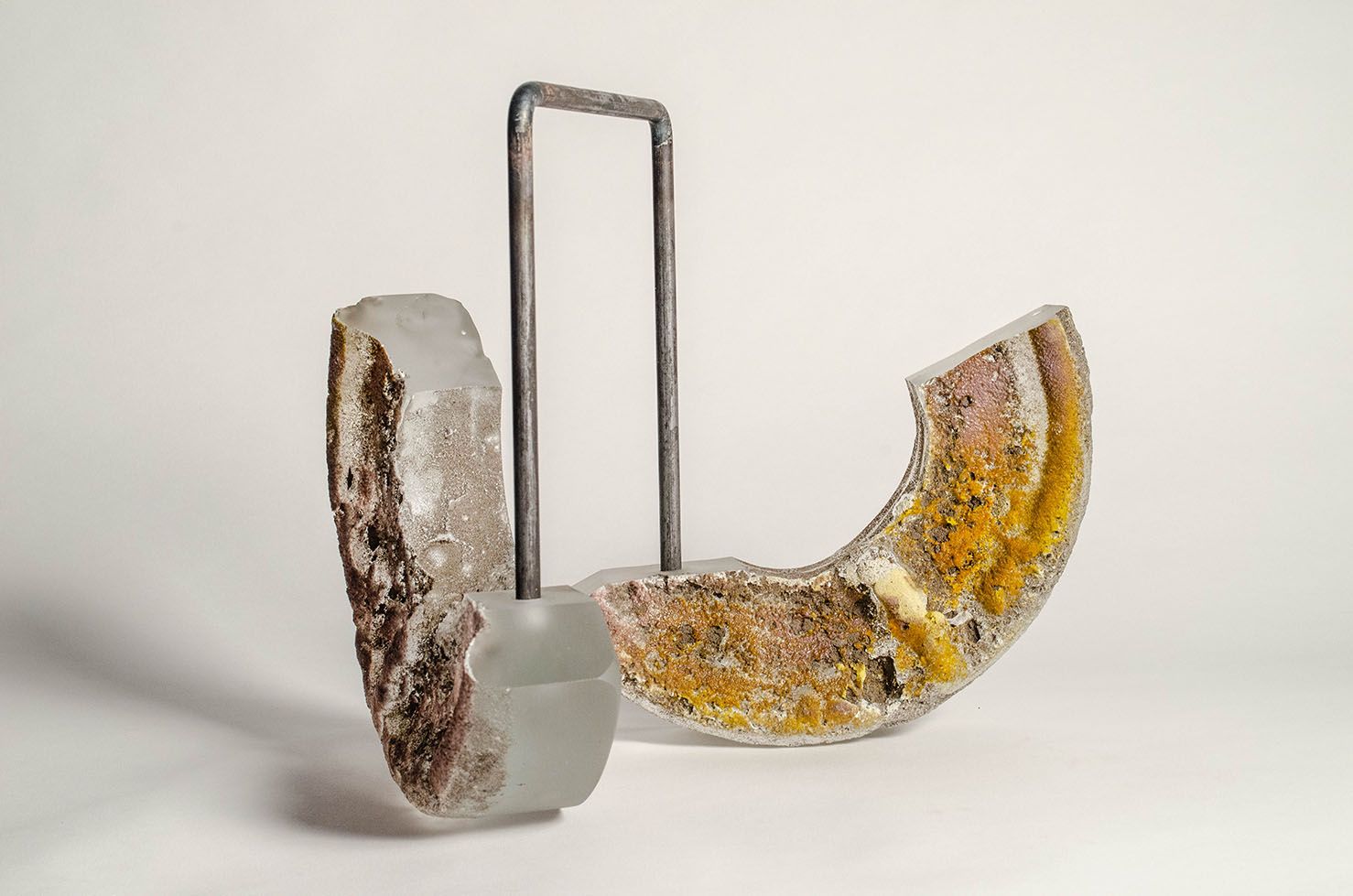 “My work is focused on the interaction of the mind and body. I seek to create sculpture that visualises the experience of living in the world, at once the most personal and universal of experiences. My work examines these ideas with a variety of techniques, using glass as my medium to help me tell this narrative through texture and symbolism. I highlight the ability of glass to appear as rock, ceramic, or stone, to reference the body. Being materials of the earth they are a grounding force, opposed by the areas of pure polish and translucency which represent the ethereal spirit of the mind. I interplay these features in my work to begin a conversation about identity, body dysphoria, injury, and experience.