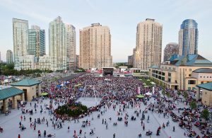 Celebration Square is a popular location to host free outdoor, public events of all sizes with the entire venue capable of accommodating up to 30,000 people. With large open areas and adjacent smaller, intimate spaces, the Square is ideal for outdoor festivals, concerts and more.