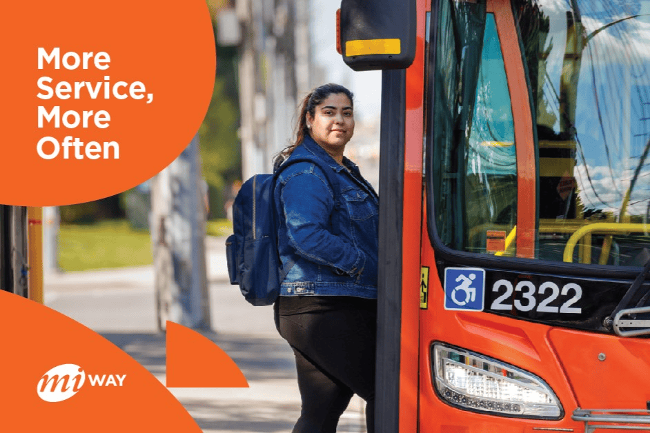 In response to the growing demands for public transit, Mississauga made major enhancements to its transit system in 2024. An additional 57,000 service hours and over 2,400 hours of additional maintenance and repair service were approved for MiWay in 2024. This investment means more buses on the road more frequently, reflecting not only the City’s commitment to improving public transit, but also realizing a vision of a connected and accessible Mississauga.