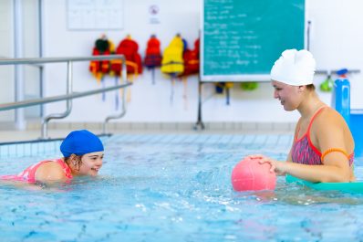 Adapted aquatics is for swimmers with disabilities. The program is broken down into smaller, more manageable steps to create a positive learning experience. The steps have been created to progress swimmers slowly and at their own rate.