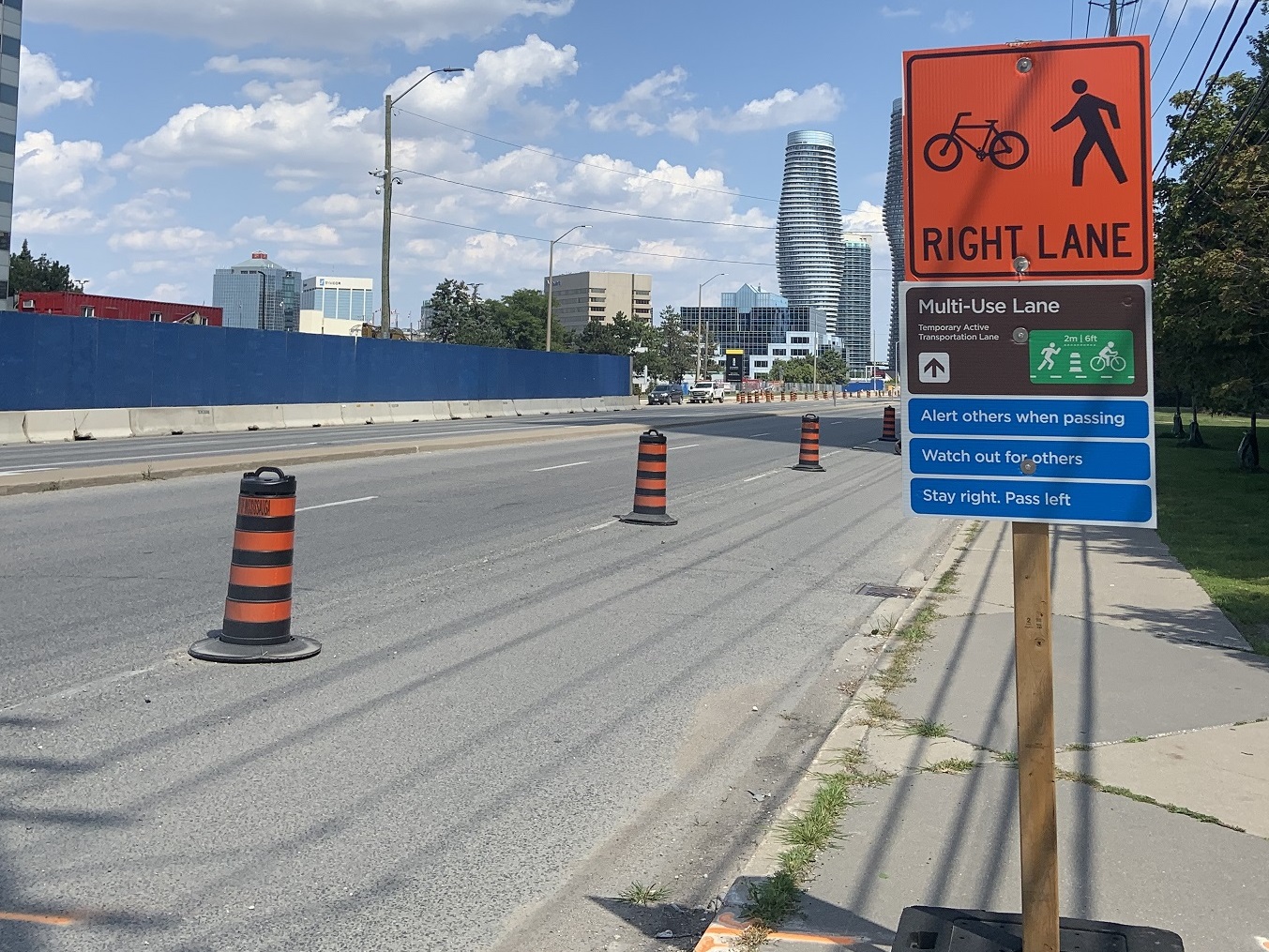 The City invested $5.62 million into cycling infrastructure in 2020. This included constructing 14.5 km of new cycling infrastructure and 5 km of temporary active transportation lanes. This made it safer and easier for pedestrians and cyclists to exercise in their neighbourhood and make local trips. The City also continued to install bike repair stands along Mississauga trails that residents can use for free. Bike repair stands are available along the Etobicoke Creek trail, at Jack Darling Park and at the corner of Sheridan Park Drive and Fifth Line West.