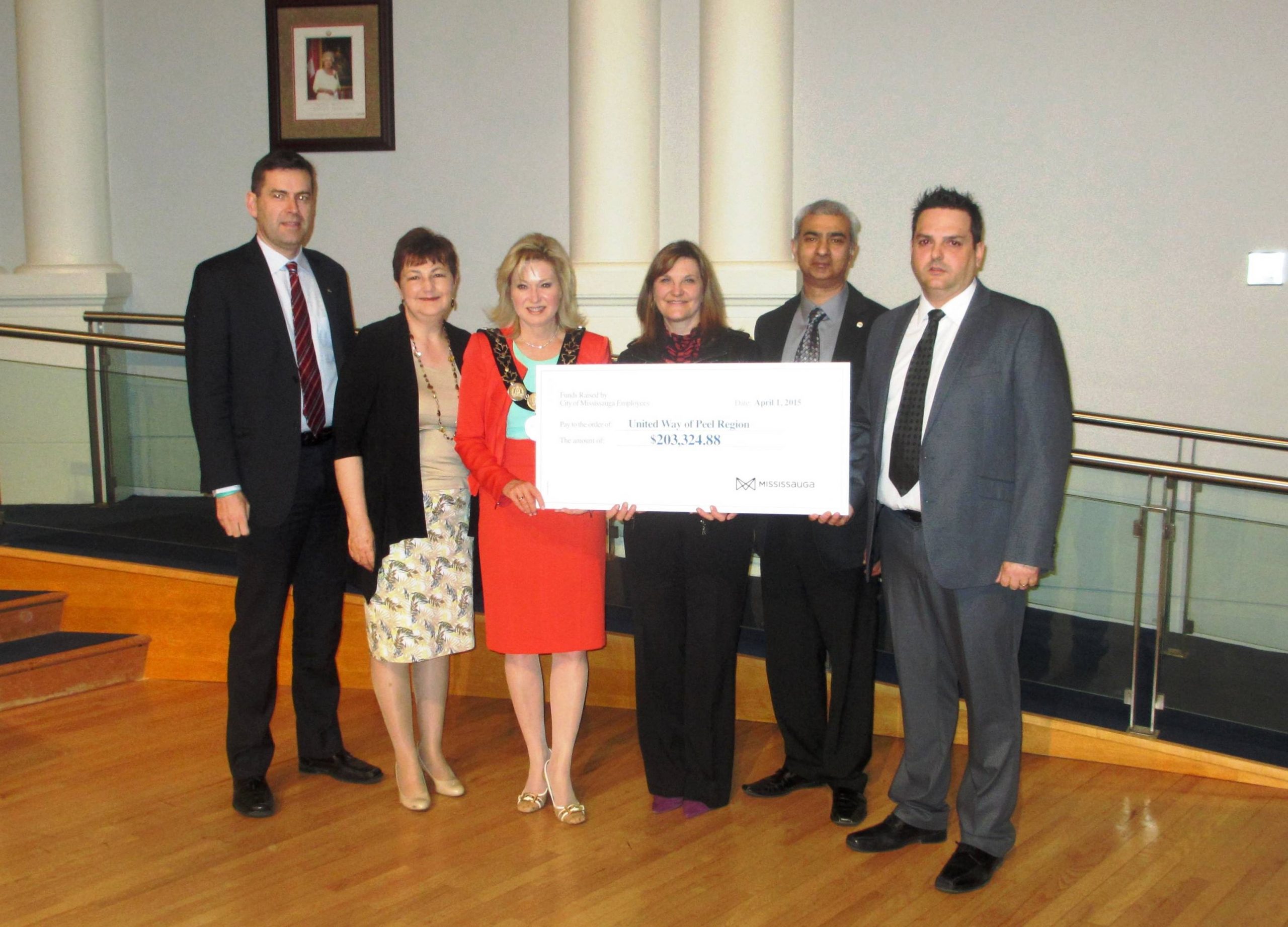 Today at Council, the City of Mississauga presented the United Way of Peel Region with a cheque for $203,324.88; the total raised during the 2014 United Way Employee Campaign.