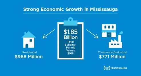 The City of Mississauga issued nearly $2 billion in building permits in 2018, a strong indicator of Mississauga’s thriving economy and prolonged growth. In a 2018 report, 3,884 building permits were issued with a total value of $1.85 billion, which covers all types of building permits including new buildings, additions, garages, decks and sheds.