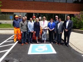 Today, the City of Mississauga officially began using the Dynamic Symbol of Access. The symbol, which improves on the International Symbol of Access by showing a person in a wheelchair in a forward motion, was painted at one of the designated accessible parking spaces at a City facility located at 950 Burnhamthorpe Rd. W. It emphasizes movement and how society views and interacts with people with disabilities.