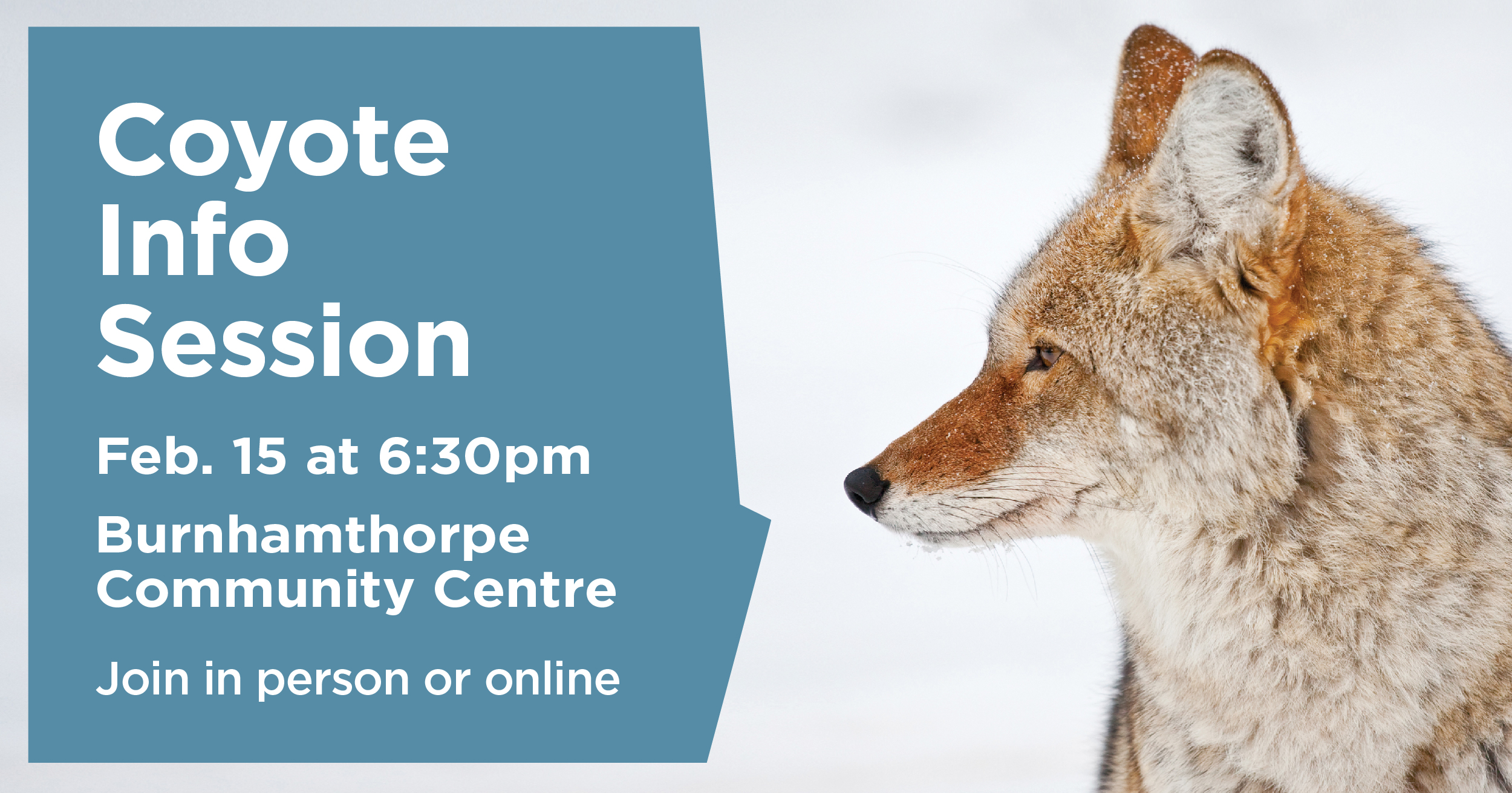 The session will feature presentations from Mississauga Animal Services staff who will share information about coyote behaviour, mating season, safety tips and how to report coyote sightings or encounters. The session will also include a Q&A period where residents can ask questions related to coyotes.