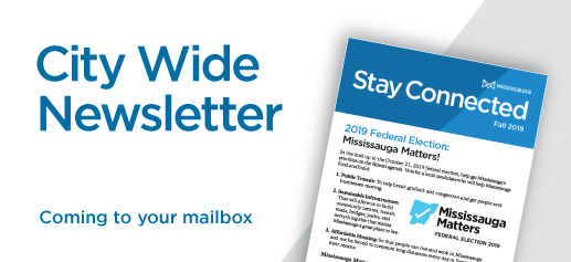 The third edition of the City’s Stay Connected Newsletter will soon be arriving in your mailbox. From October 1 to 4, residents should watch their Canada Post mailboxes for the City publication. The newsletter will provide residents with relevant information on: what’s going on in the community, upcoming events and programs, important City issues and updates on exciting projects that are transforming Mississauga.