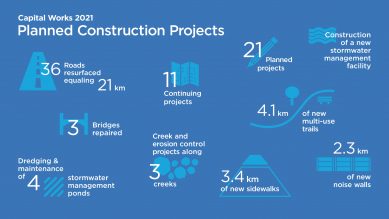 Construction projects are deemed essential under Ontario Regulation 82/20 – Closure of Places of Non-Essential Businesses. In total, there are 21 construction projects planned for 2021 with 11 projects from 2020 continuing into 2021.