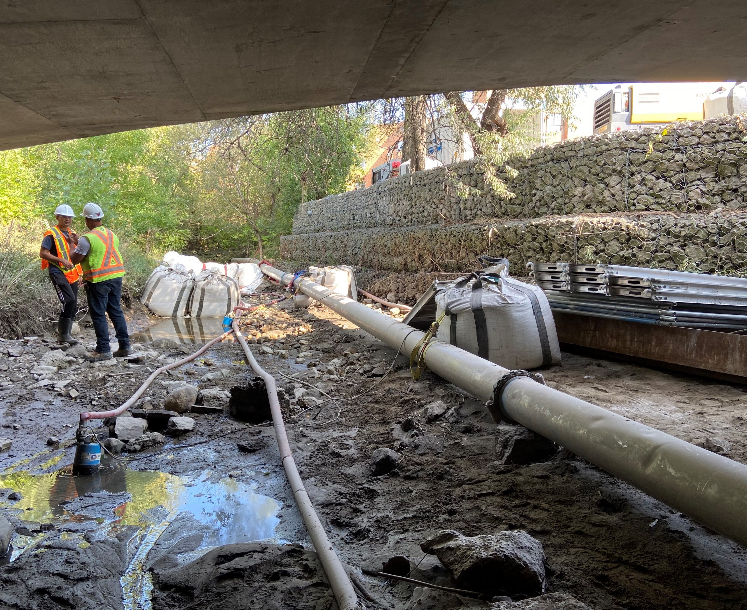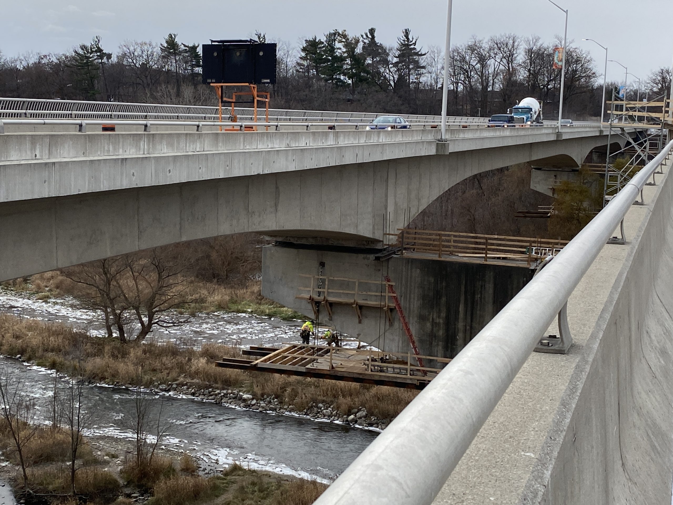 Rehabilitation of the twin bridges on Burnhamthorpe Road West over the Credit River. Work continues into 2024.