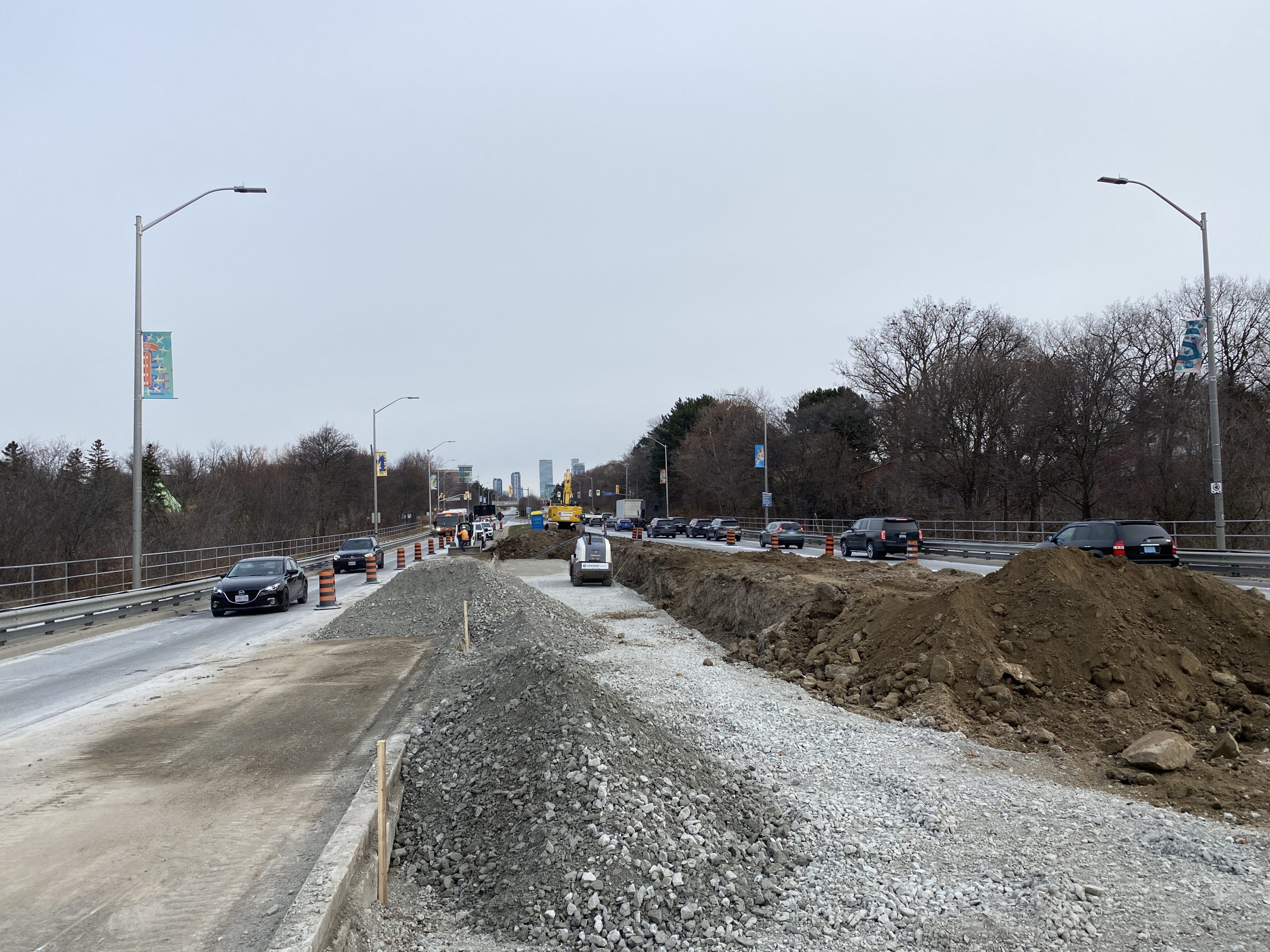 • Construction of the Rathburn Road and Ponytrail Drive Integrated Road Project, which includes three kilometres of new cycle tracks, pavement rehabilitation, intersection improvements and new pedestrian crossings, noise walls, traffic signals and street lights (ongoing into 2024)