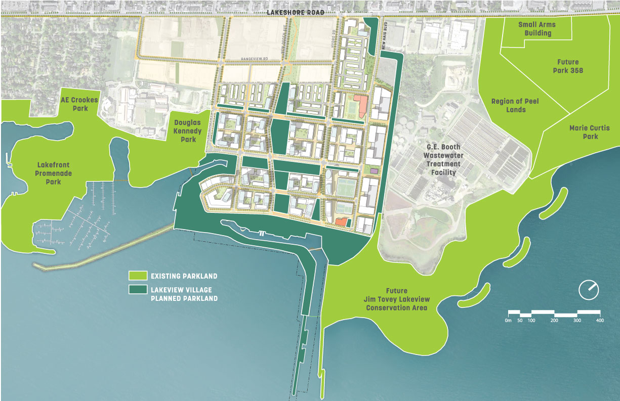 The Lakeview Village Waterfront Development is a significant mixed-use waterfront development on the eastern edge of Mississauga. The area is envisioned to become an important destination in the Greater Toronto and Hamilton Area and beyond. The parks are a significant feature of the development and will provide new opportunities to connect with Lake Ontario. Lakeview Village Waterfront Development parks will serve as destination parks for visitors as well as community parks for the local neighbourhood.