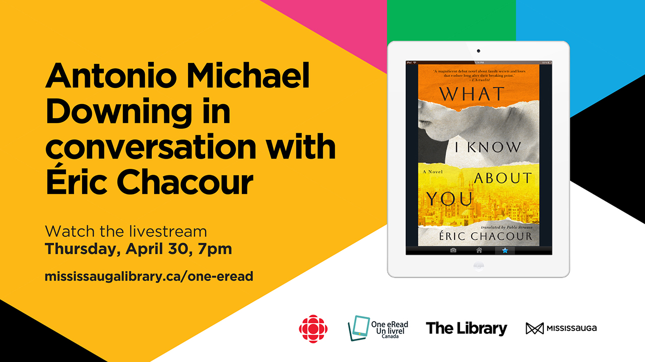 Borrow “What I Know About You” in both eBook and audiobook formats during the month of April. Readers can then join an online talk with author Éric Chacour and translator Pablo Strauss, hosted by Antonio M. Downing of CBC’s “The Next Chapter.”