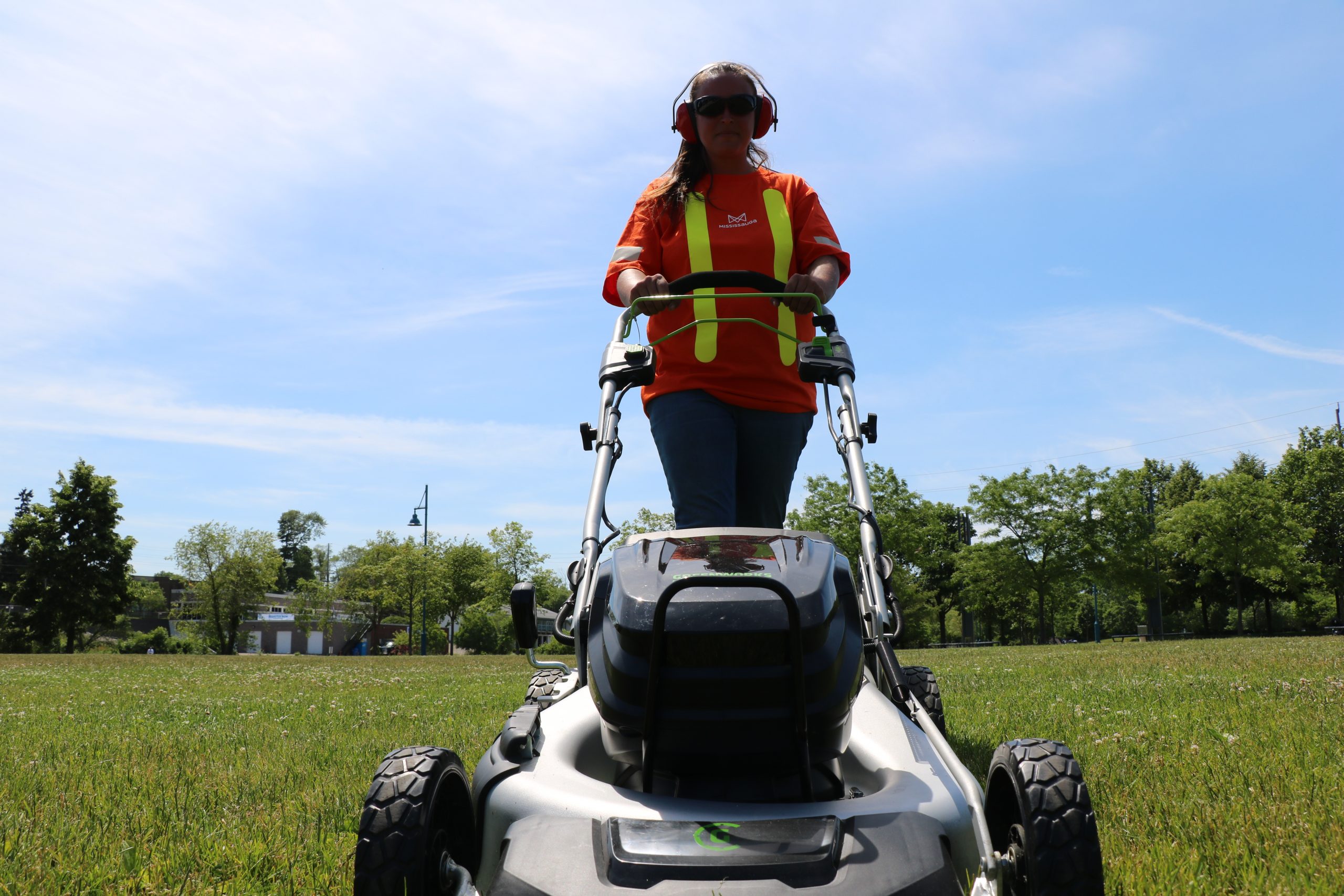 The transition to all-electric, battery-powered equipment will reduce carbon emissions, limit noise and increase safety for Parks staff. The new equipment includes two riding zero-turn mowers, a push mower, leaf blowers and trimmers.