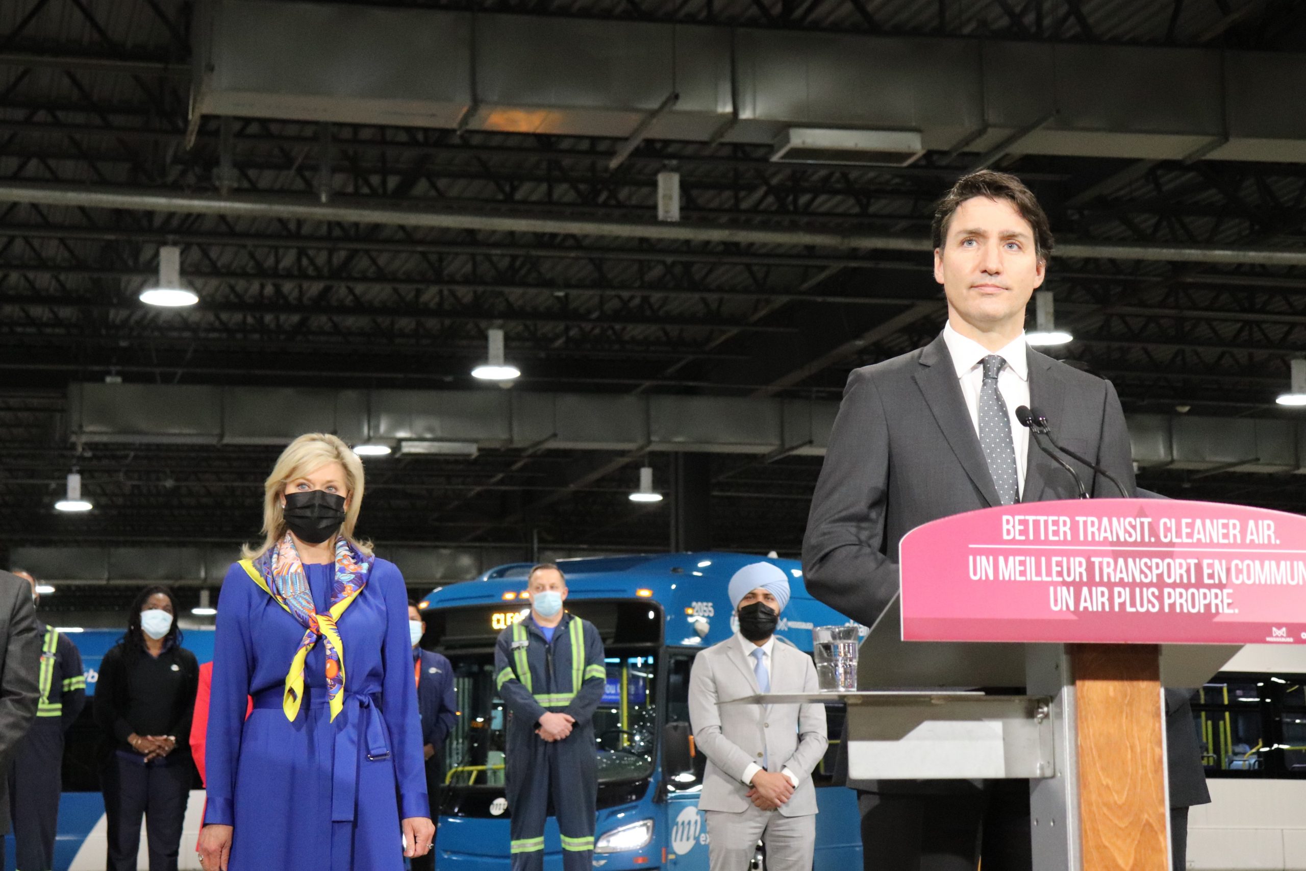 Prime Minister Justin Trudeau, Mayor Bonnie Crombie, Iqwinder Gaheer, MP Mississauga-Malton, MiWay staff