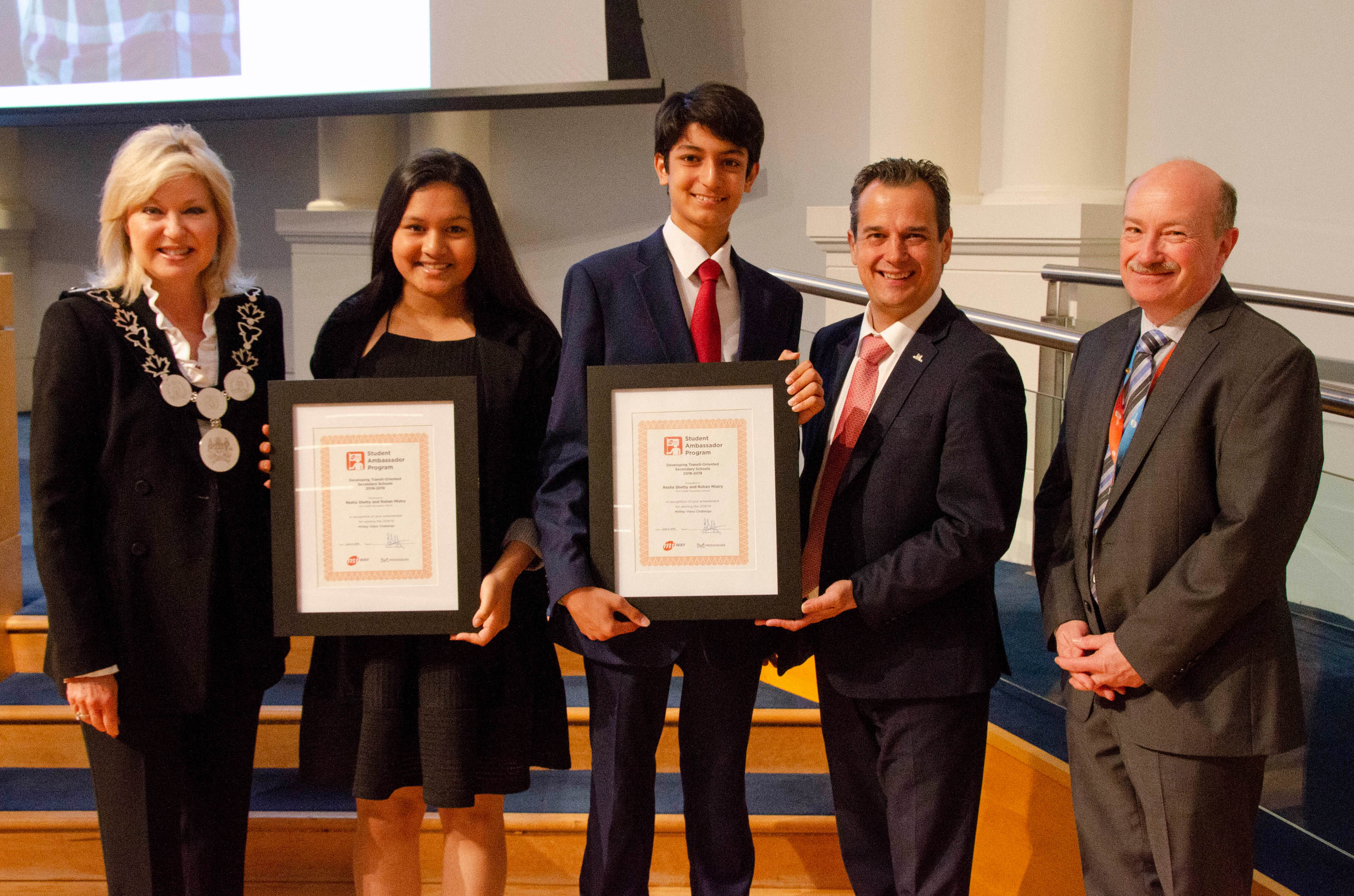 Council also recognized grade 10 students Resha Shetty and Rohan Mistry from Port Credit Secondary School, who were the winners of the Ambassador Program’s new Video Challenge. They created a two-minute video about travelling on MiWay to help their fellow students learn how easy it is to ride to school or anywhere they need to be. Both winners received a smart watch.