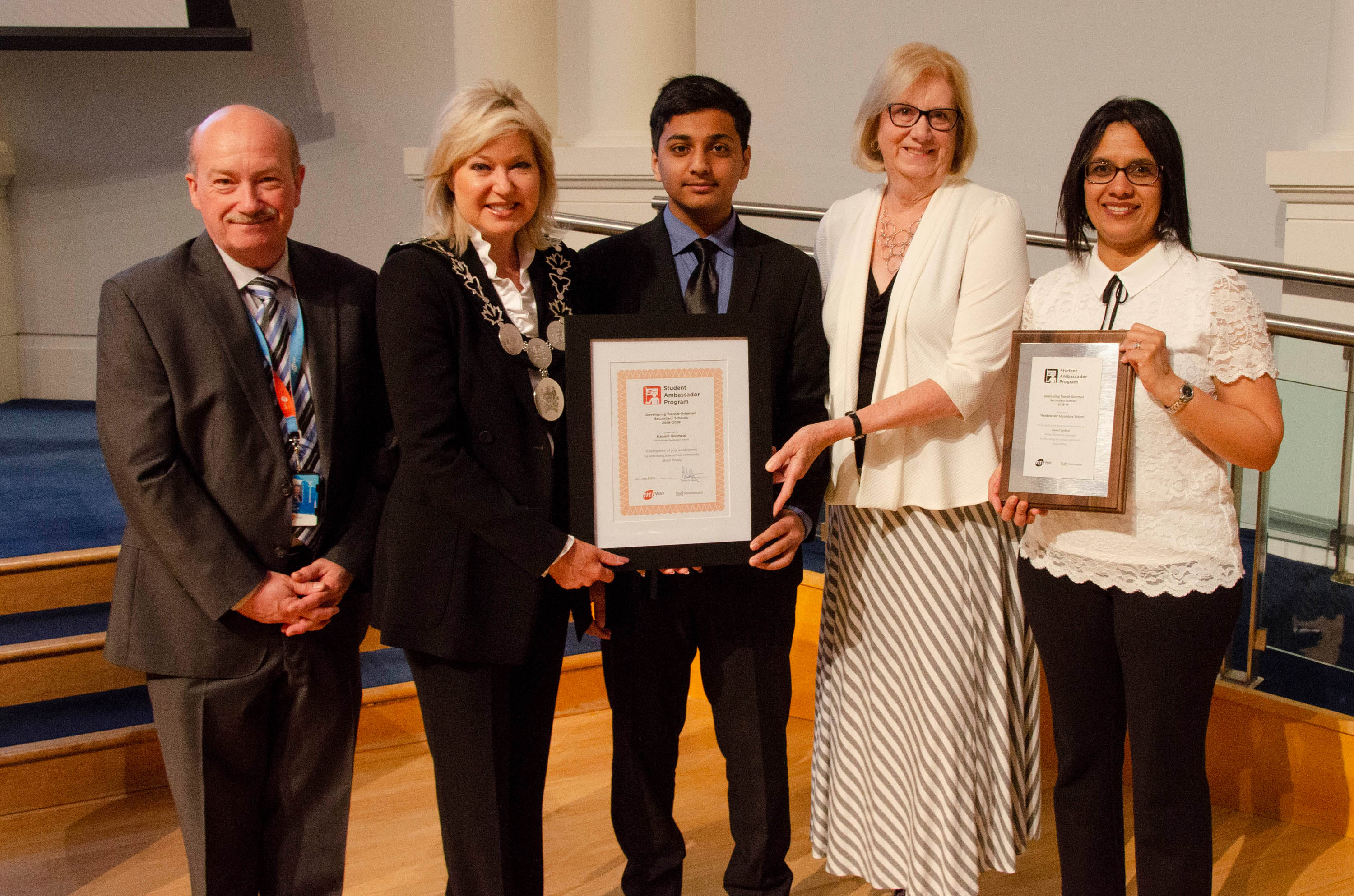 Today at Council, Kaamil Quidwai, grade 10 student from Meadowvale Secondary School, was named the 2018-2019 MiWay Student Ambassador of the year. Quidwai spread the word about MiWay in his school and encouraged his peers to take transit.