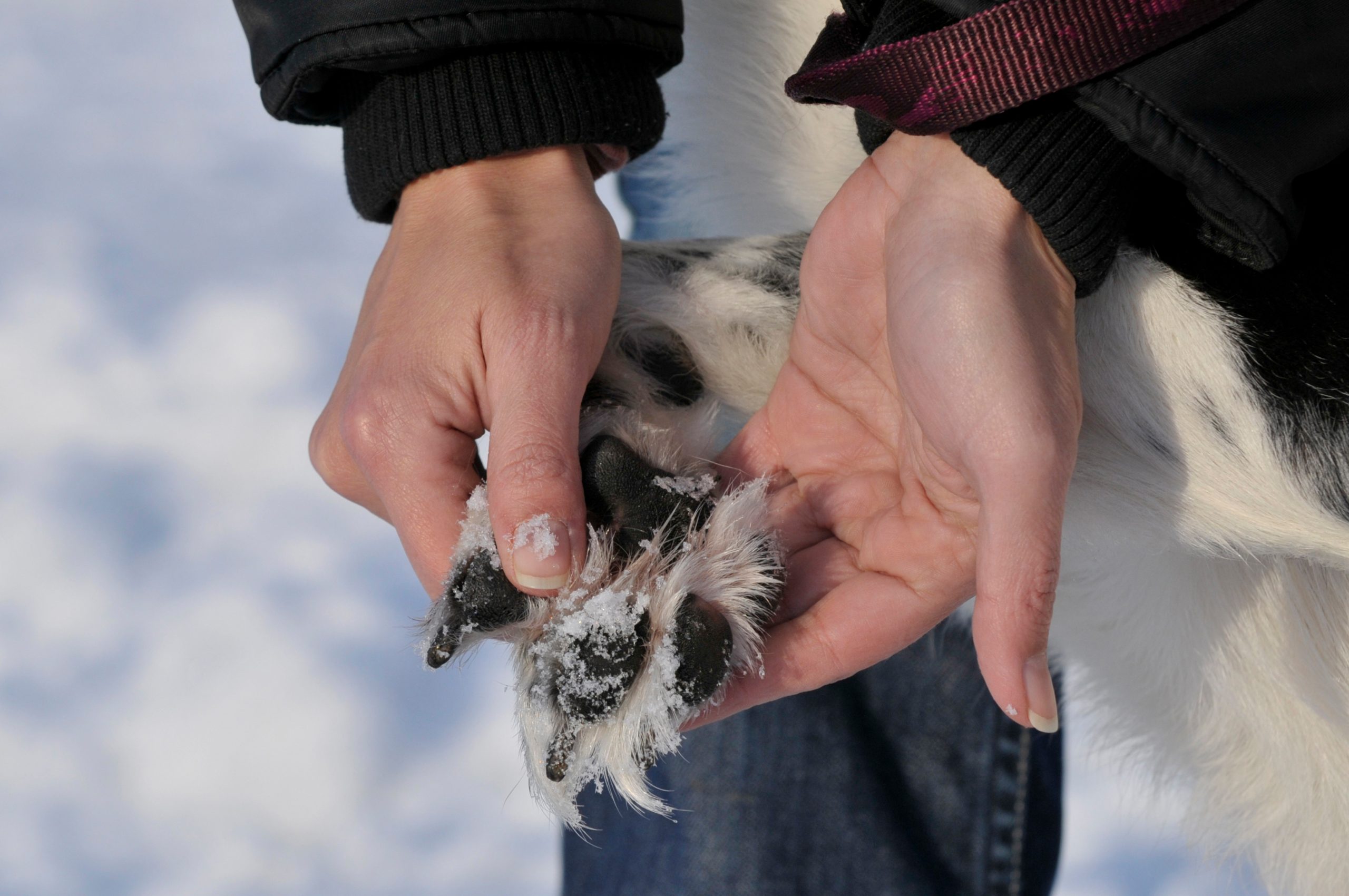 Road salt, de-icing chemicals, and sand can cause severe irritation, inflammation, and chemical burns to paw pads. Clean your dog’s paws after walks and consider using dog boots. Repeated contact with salt can cause painful cracks or cuts to paw pads