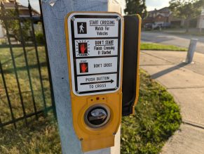 To help improve safety at intersections, the City has installed enhanced street lighting to improve visibility for drivers, pedestrians and cyclists. The City has also installed signal heads with black backboards to make the lights more visible to drivers. This helps especially at night and in poor weather conditions. Another enhancement is the installation of accessible pedestrian signals. This uses an audible chirp or chime to help pedestrians who are blind, visually impaired or deaf-blind to indicate when the pedestrian signal is active.