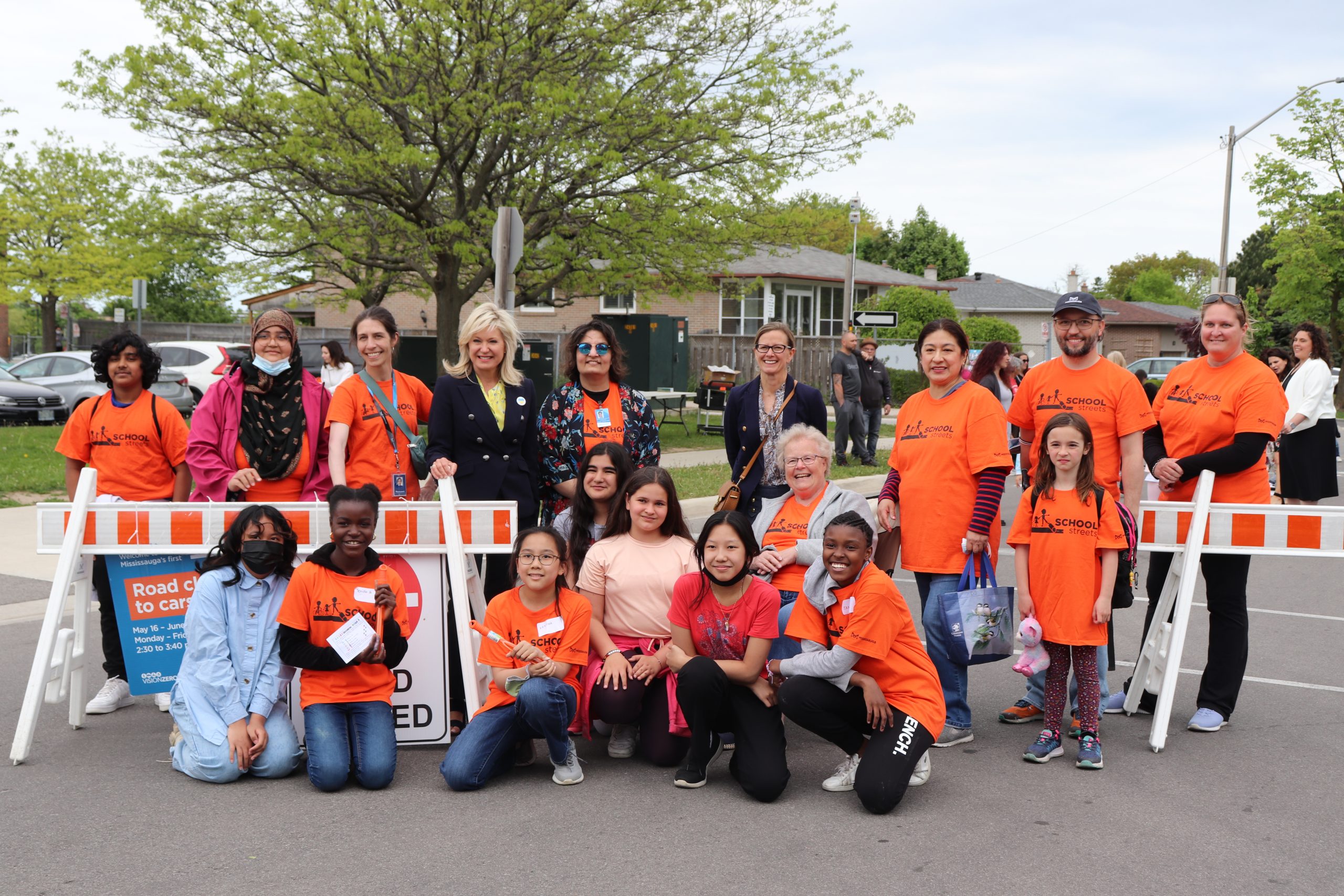 Mayor Bonnie Crombie and Councillor Fonseca with School Streets volunteers.
