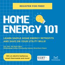 If you’re not sure where to start with your home retrofit, you can sign up for a free home-energy coaching session offered by the Centre for Community Energy Transformation (CCET). CCET is a non-profit organization helping to advance the transition to a low-carbon future across Mississauga, Brampton and Caledon.