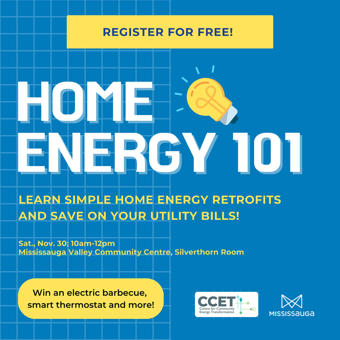 The City is hosting the Home Energy 101 session in partnership with the Centre for Community Energy Transformation (CCET), Toronto and Region Conservation and Credit Valley Conservation.