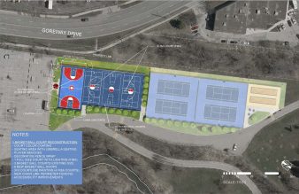 The $150,000 funding will upgrade the planned court reconstruction to a multi-court basketball facility, with one regulation-sized FIBA (International Basketball Federation) court and three full-courts with four – 3vs3 FIBA hoops. The funding will also provide colour coating, an umbrella seating area, player benches, a decorative fence wrap, eight new basketball hoops and court line paintings. The planned reconstruction of the basketball courts currently includes a provision for asphalt court replacement, an expanded basketball play area and a fence replacement.