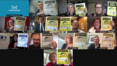 Speeding is a serious problem on Mississauga roads. It’s a contributing factor in approximately one-third of fatal collisions in Canada. The #TakeThePledgePeel campaign aligns with the City’s work of taking action to effectively implement Vision Zero principles into its road safety initiatives and efforts to keep all road users safe, and reduce injuries and collisions on Mississauga roadways. The City is increasing its efforts to make Mississauga roads safer for everyone by lowering speed limits and installing traffic calming measures to address speeding, make improvements to infrastructure and use data to make informed decisions.
