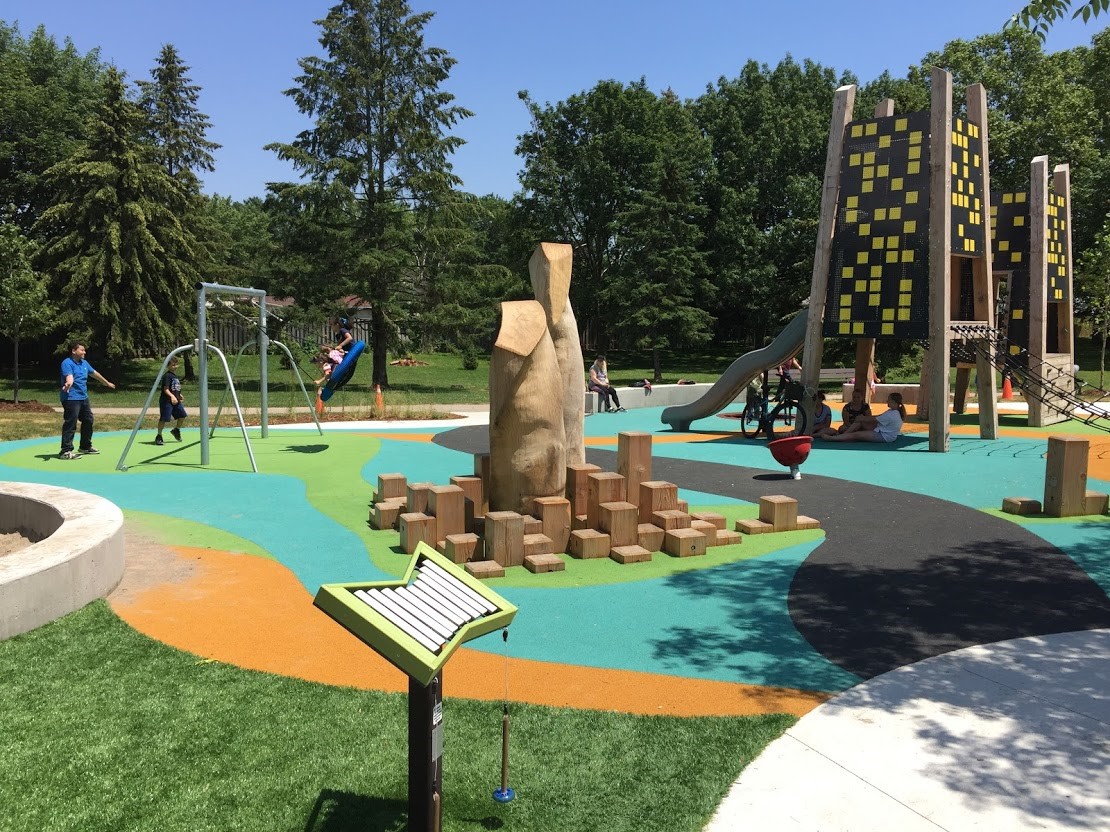 Parks also have other climate benefits: they provide shade – from trees planted in the parks and from shade structures. This helps keep Mississauga residents cool on hot summer days. Parks also reduce greenhouse gas emissions, as trees, shrubs, and other greenery absorb these gases. In addition, parks help lower the levels of air pollution and help manage stormwater to minimize flooding and erosion.