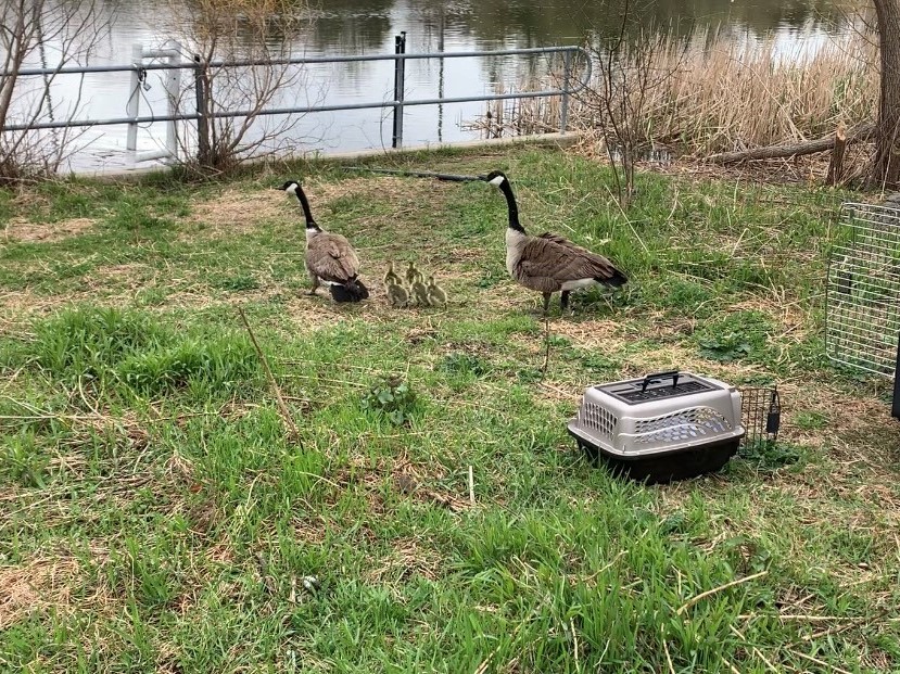 • A family of geese nesting on top of a building at the University of Toronto Mississauga were safely relocated by Animal Services officers to a pond on campus.