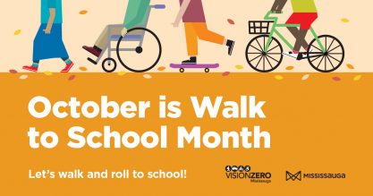 October is Pedestrian Safety Month. During the fall, the risk of collisions increases when daylight hours shorten. In partnership with the Region of Peel, the City of Mississauga is raising awareness about pedestrian safety, reminding all road users of their responsibility on the road and encouraging students and their families to use active transportation safely on their way to school. October is also International Walk to School Month, which celebrates walking and other forms of active transportation as a healthy and fun way to get to school that benefit students, their communities and the environment.