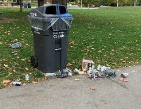 If you see a full garbage bin, recycling container or a litter in a park or trail, please report it online or by calling 311.