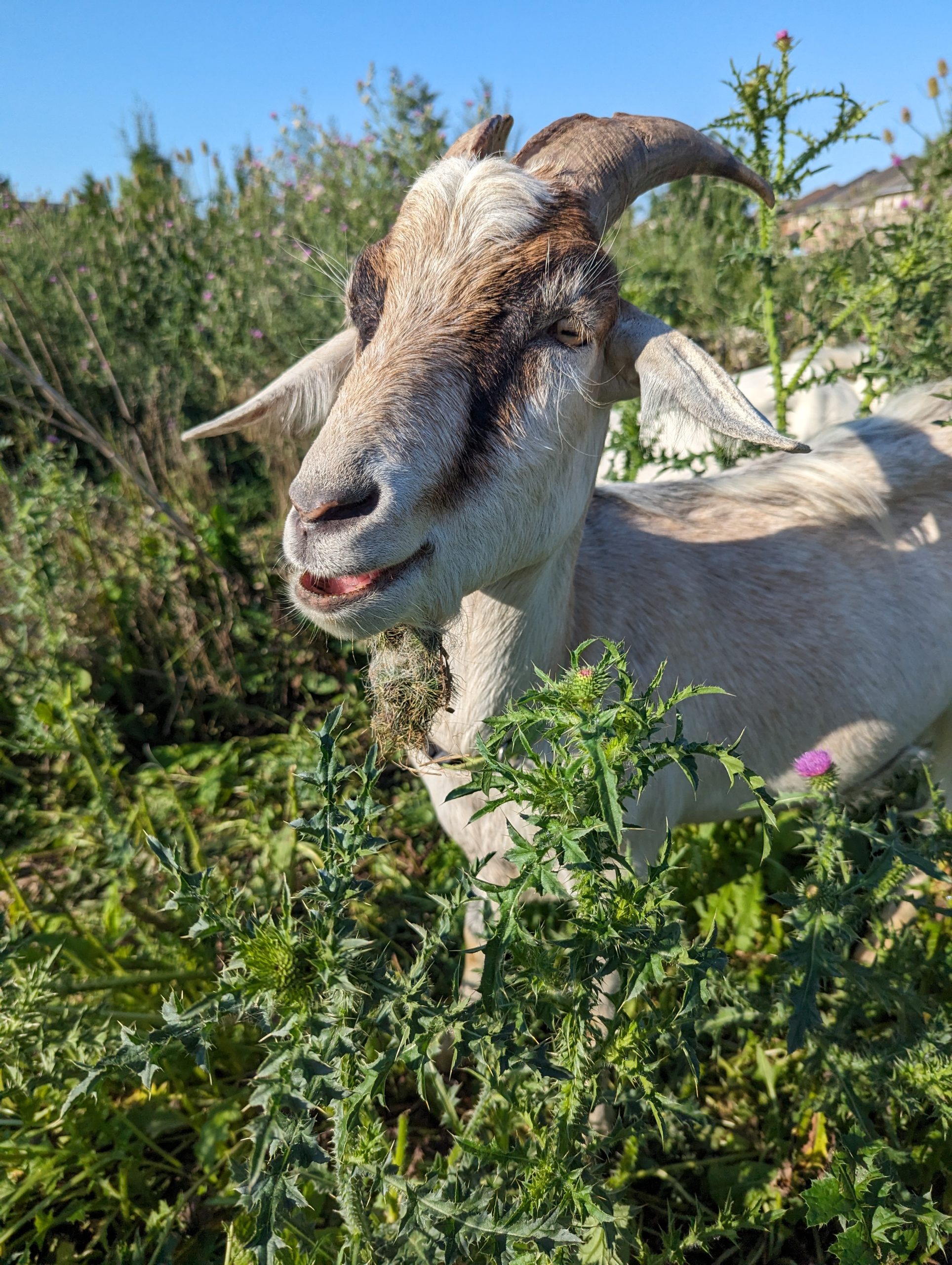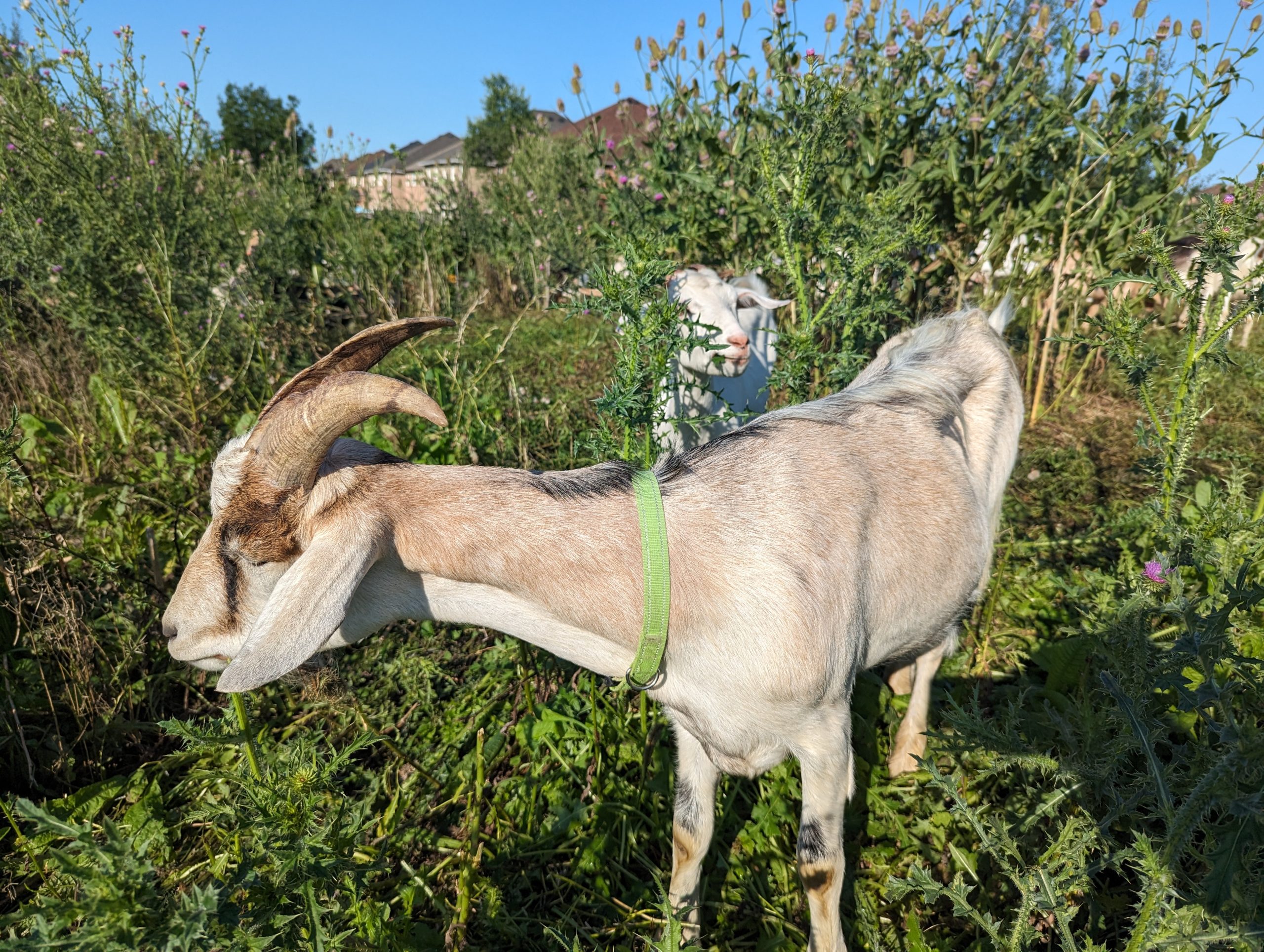 The 60 goats have returned to Mississauga to graze on invasive plant species, including non-native thistles and Common Reed (Phragmites australis).