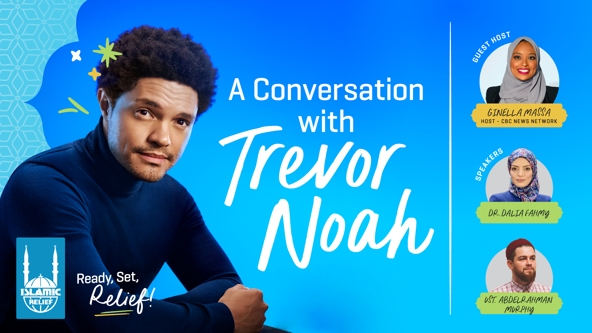 - A Conversation with Trevor Noah: March 19 at Paramount Fine Foods Centre. Get Ramadan ready by building bonds and insightful conversation, hosted by Islamic Relief Canada.
