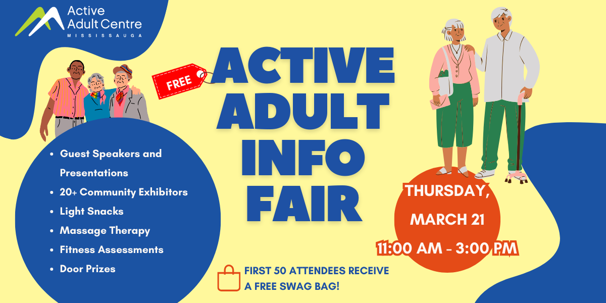 The 2024 Active Adult Info Fair is the go-to event for older adults to stay socially connected and learn about all the resources for living your best life at any age. Event features include: Exhibitor Area with over 20 booths from industry experts, Complimentary massage therapy, physiotherapy & reflexology sessions, Educational presentations on need-to-know topics for seniors including brain fitness, fire safety, and real estate, Complimentary coffee and snacks, Affordable lunch deals at our volunteer-run cafe, Raffle Prizes, and a FREE swag bag for the first 50 attendees!