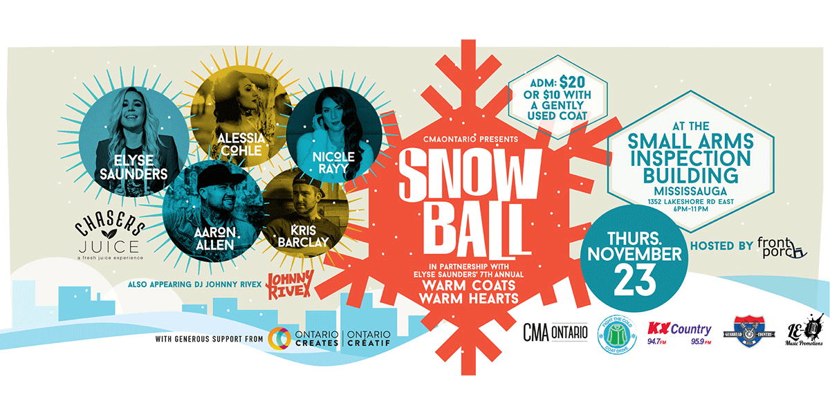 The Country Music Association of Ontario (CMAOntario) is excited to announce that they have joined forces with Elyse Saunders’ Warm Coats Warm Hearts event to present the Inaugural Snowball holiday celebration, the brand new addition to CMAOntario’s Passport to Country, featuring some of the best music coming out of Ontario today.