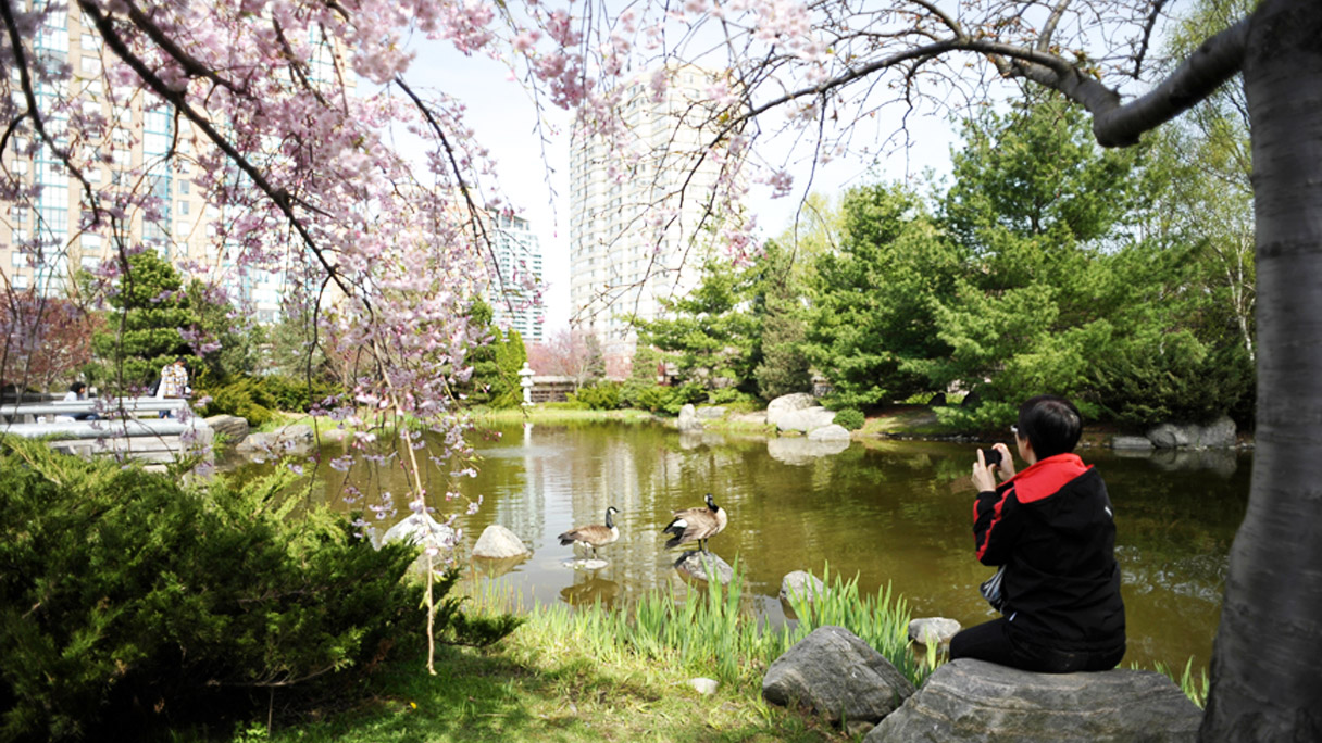 Enjoy a quiet escape in this Japanese garden located in downtown Mississauga. In the spring the cherry blossom and magnolia trees bloom.