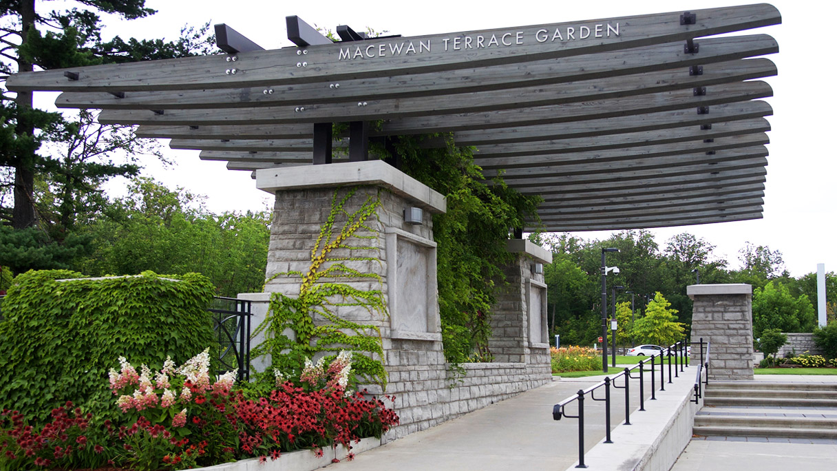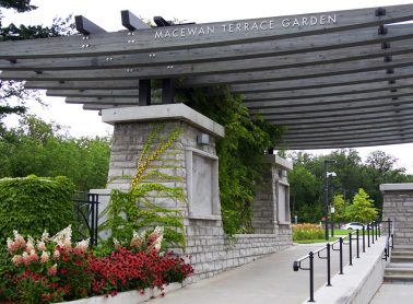 The MacEwan Terrace Garden is a two-acre perennial garden opened at Riverwood in 2012. This is an accessible site that looks over the wetlands, grasses, and white pine and spruce trees. The heritage gardens attract birds and butterflies.