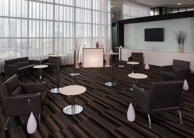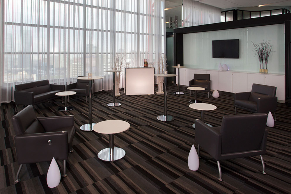 Towering 12 stories above downtown Mississauga, this contemporary venue features floor to ceiling windows showcasing panoramic views of the city.