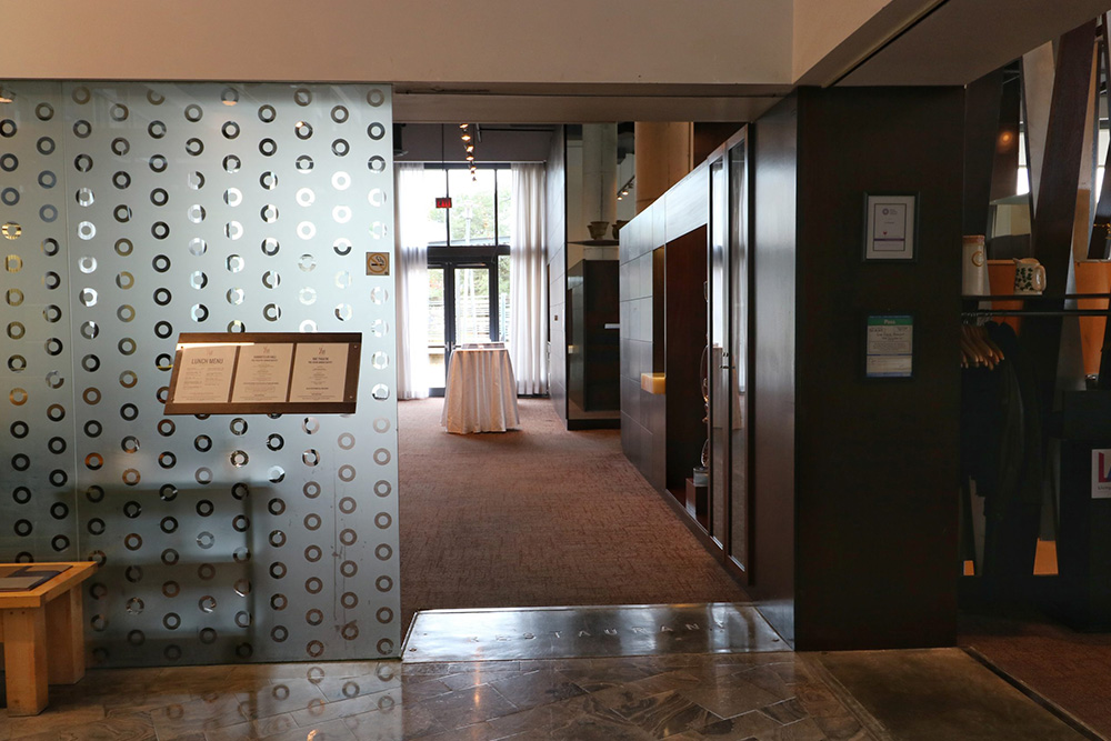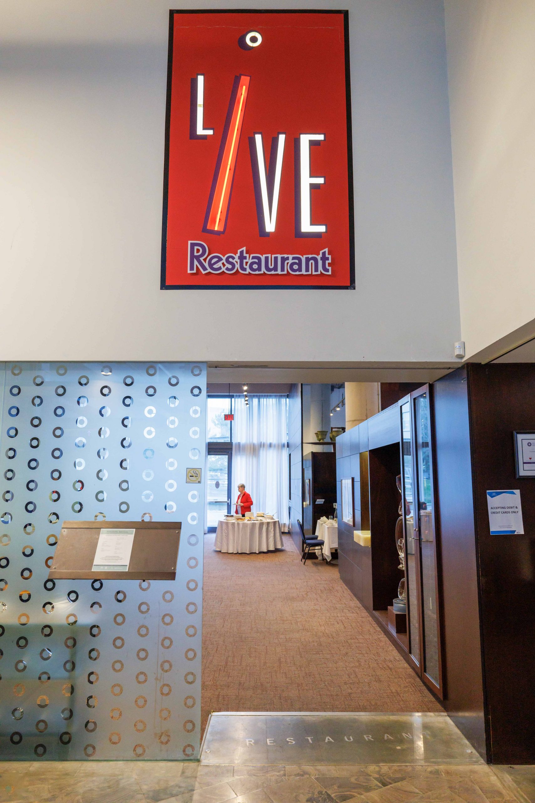 LIVE Restaurant is located on the ground floor of the Living Arts Centre next to the elevators.