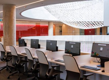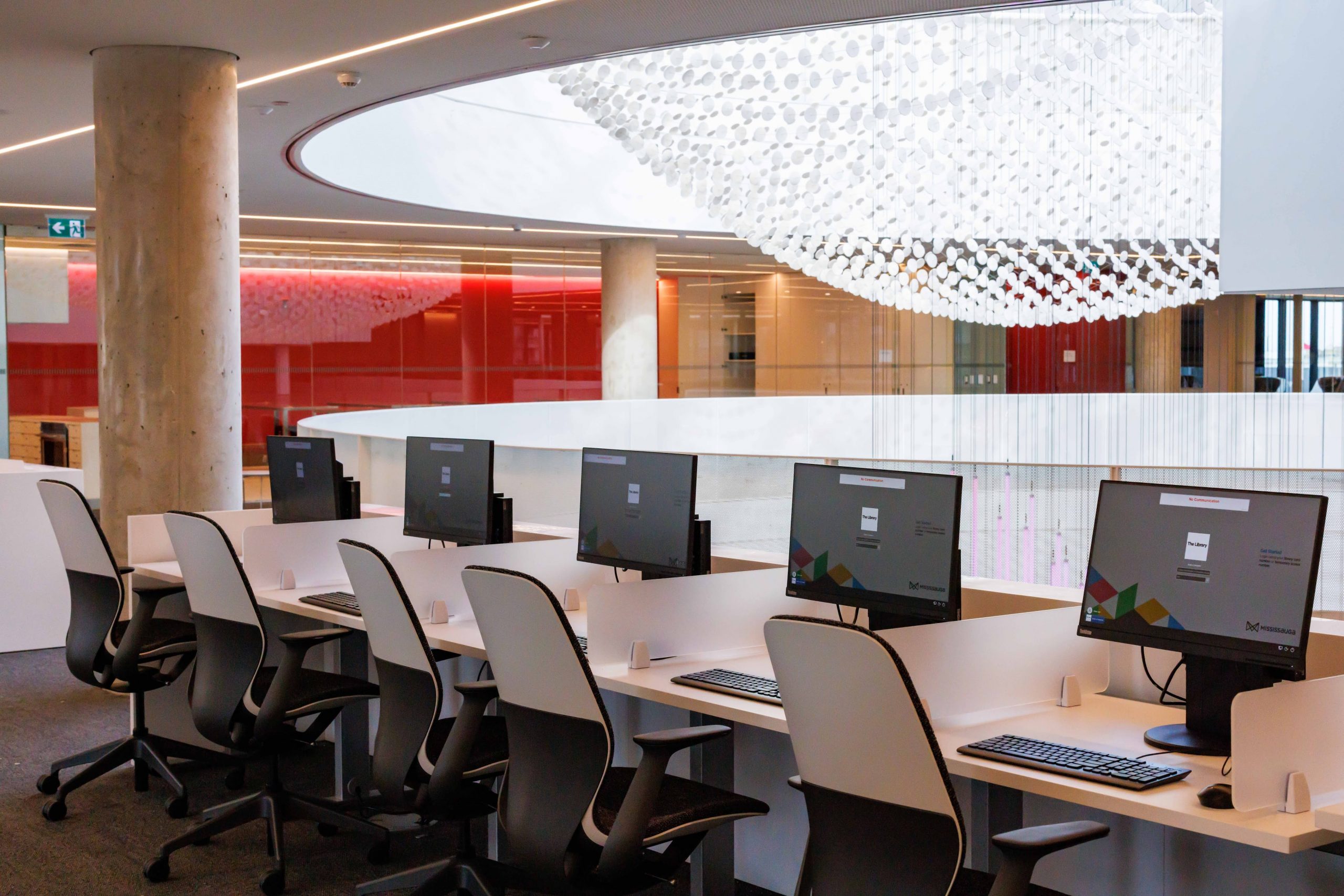 Connect your laptop to a docking station to access a monitor, keyboard and mouse at our touchdown stations.