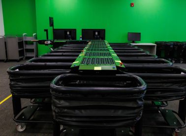 Borrow a laptop or iPad from our device-lending kiosks found on floors 1, 2 and 3. A valid library card is required to sign out devices for same-day, in-library usage. Borrowed devices must be returned to the kiosk by the end of the day.