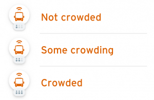 For example, the Transit app will display one, two or three grey person icons with the information on the next few approaching buses to indicate how crowded the bus is.