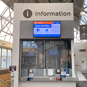 The MiWay Information Booth at the City Centre Transit Terminal (CCTT) is now open from 8 am to 7 pm on weekdays.