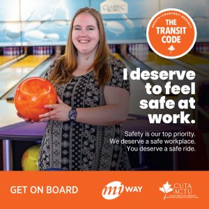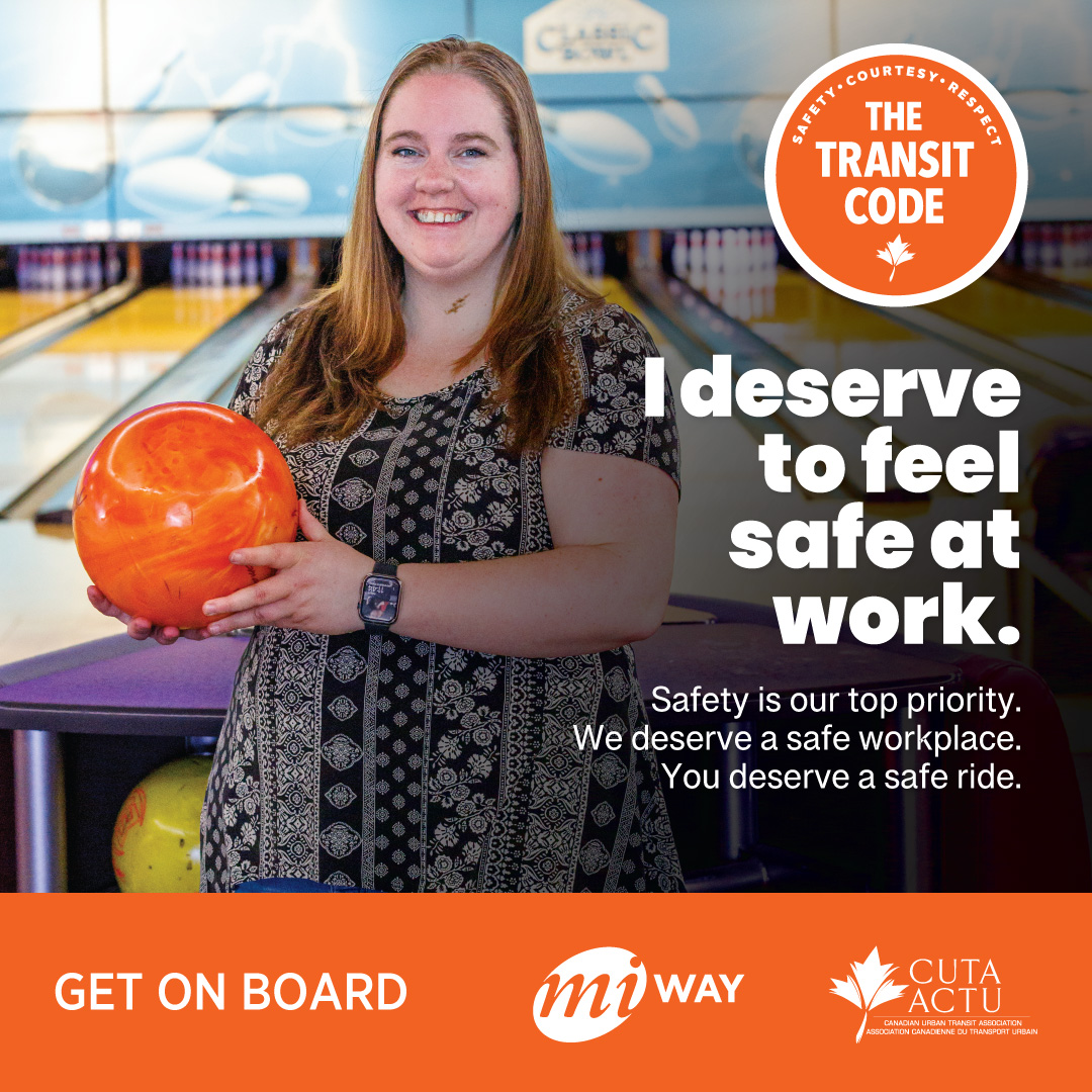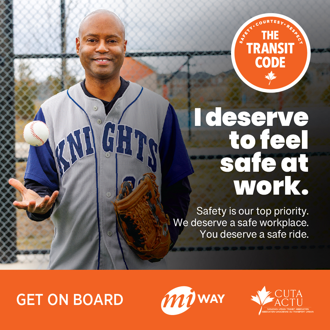 Last year, the Canadian Urban Transit Association (CUTA) launched the Transit Code campaign to encourage respect and safety on public transit. MiWay created its own version of this campaign with a focus on Operator Safety. The campaign features photos of our Operators enjoying hobbies like baseball, bowling, and spending time with their dogs reminding riders that these hardworking individuals are part of our community.